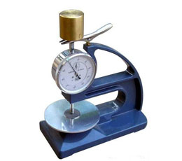 2、用手指按下操縱桿,使測足上臺,將被測片材質(zhì)放在平臺與測足之間,輕放操縱桿此時表的讀數(shù),即被測物的厚度。每個待測尺寸至少要取5個測量值,計算5點的平均值作為該卷材的厚度并報告最小單位值。