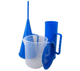 漏斗與量杯采用塑料注塑一次成型,尺寸準(zhǔn)確,克服了同類產(chǎn)品鐵板噴漆造成的流出管尺寸不準(zhǔn)確及長(zhǎng)時(shí)間易生銹的缺點(diǎn)。